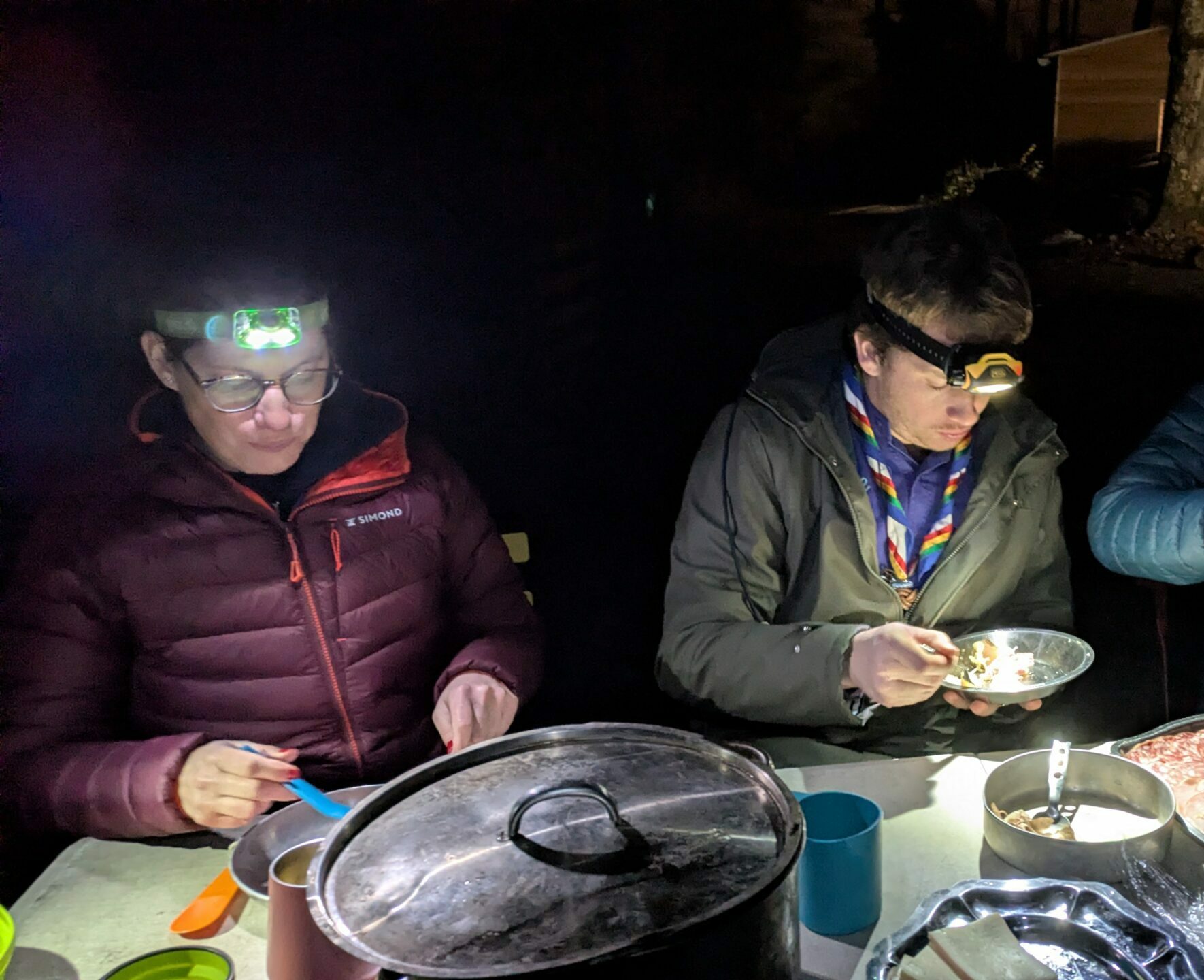 Les repas, simples et savoureux (clé en main) ont été préparés au feu de bois, offrant à tous une vraie expérience de cuisine de camp. Les veillées et les temps informels autour du feu ont prolongé ces moments de partage, avec aussi un “5e” convivial pour les adultes.